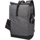 Roll top recycled backpack made from 300x250D rPet (recycled bottles), padded laptop compartment for 15.4" laptop, zipped front pocket, elasticated side drinks holder and adjustable back straps.