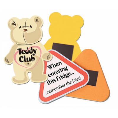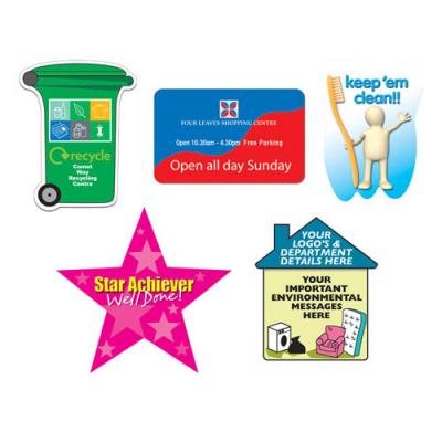 Flexible magnet with handy memo clip holder, printed full colour. Various shapes including lorry, recycling bin, phone, square, telephone, star and house.