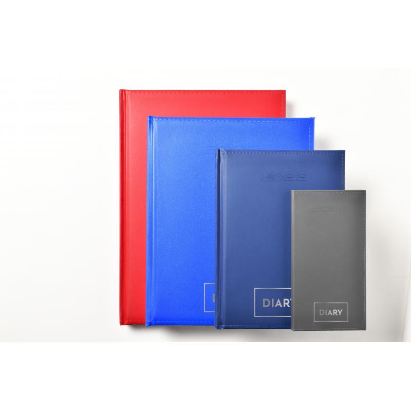 Contemporary Smart Matt Finish Diary with Perimeter Stitched Front Padded Cover & Blind Embossed Year Date. White recycled Pages with White Ribbon Marker. Full Colour Maps. SmoothGrain range also includes Pocket, A5 and Quarto size diaries. Matching Notebook available.