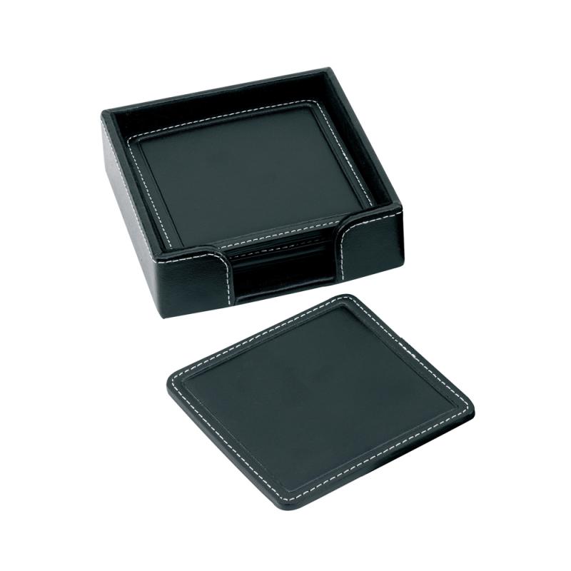 Sandringham Nappa Leather Square Coaster Set finished in soft black Nappa leather with a full natural grain