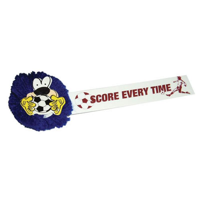 Mophead pom with card face holding a football Ribbon attached with your promotional message printed in full colour WIth a full range of 12 mophead colours